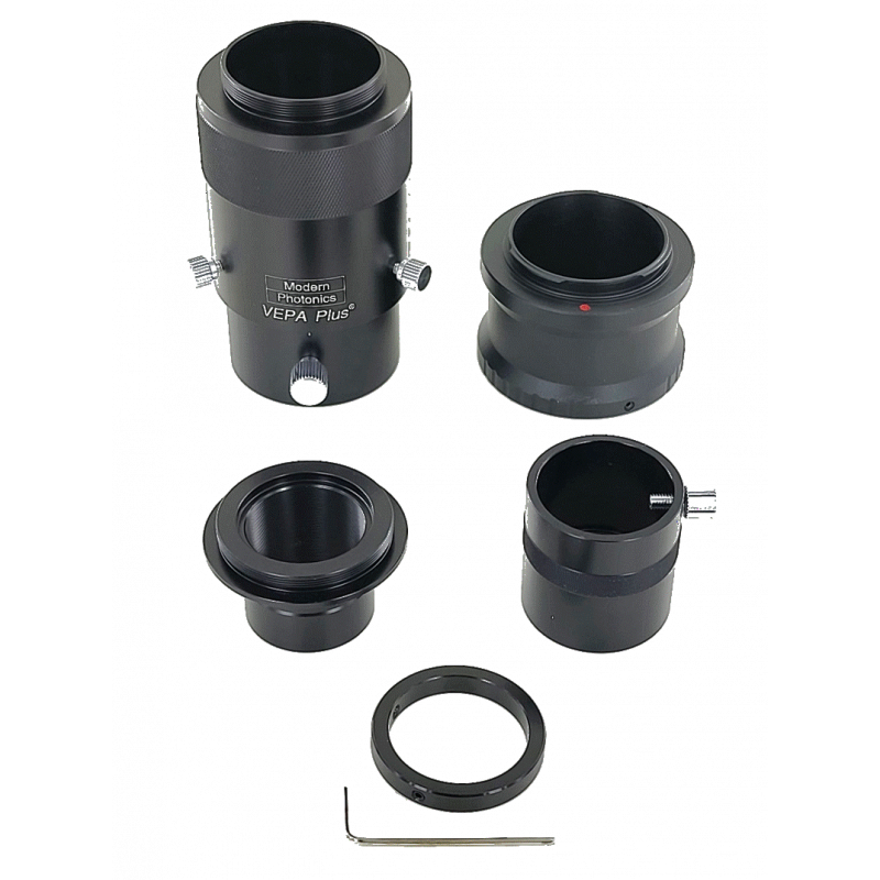 This money saving combo includes our new VEPA+ Variable Eyepiece Projection Adapter, an ETX 1.25" Rear Port Adapter, A 1.25" Prime Focus Adapter, a Parfocalizing Ring to aid in Focusing and the appropriate T-Ring for your camera.